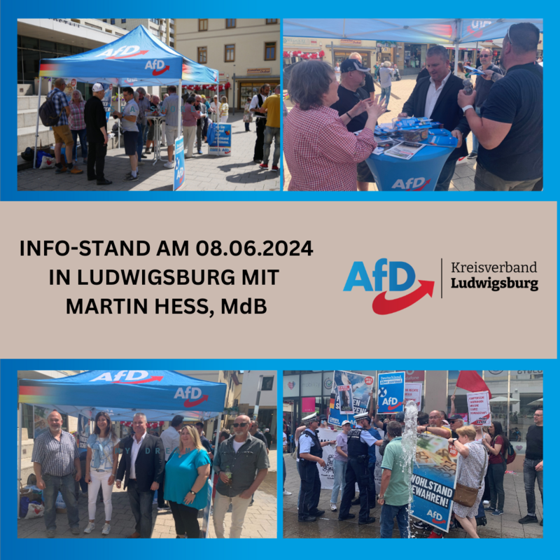 Info-Stand am 08.06.24 in Ludwigsburg Auch wenn sämtliche Parteien ihre Stände in der Fußgängerzone aufbauen durften und wir unseren Standort vor dem Marstall-...