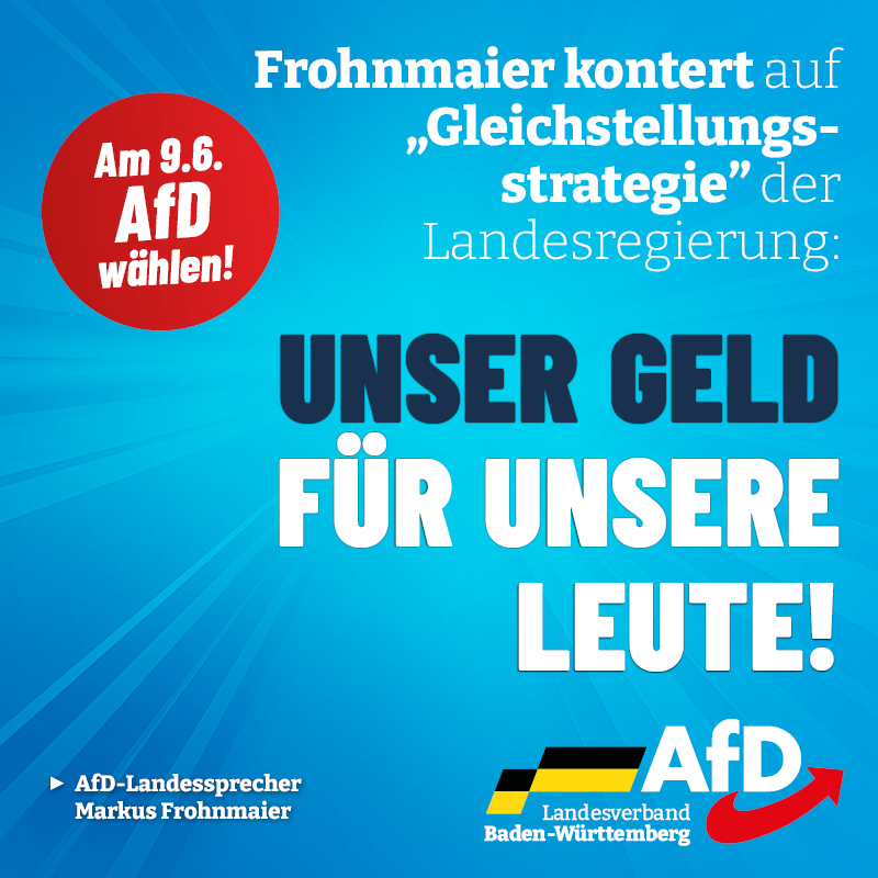 Markus Frohnmaier kontert auf "Gleichstellungsstrategie" der Landesregierung: Unser Geld für unsere Leute!