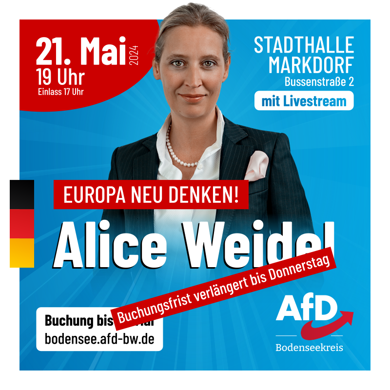 Letzter Tag zur Anmeldung: Alice Weidel in Markdorf