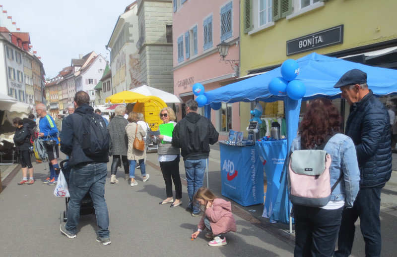 Schlumpfiger Infostand auf dem Überlinger Wochenmarkt