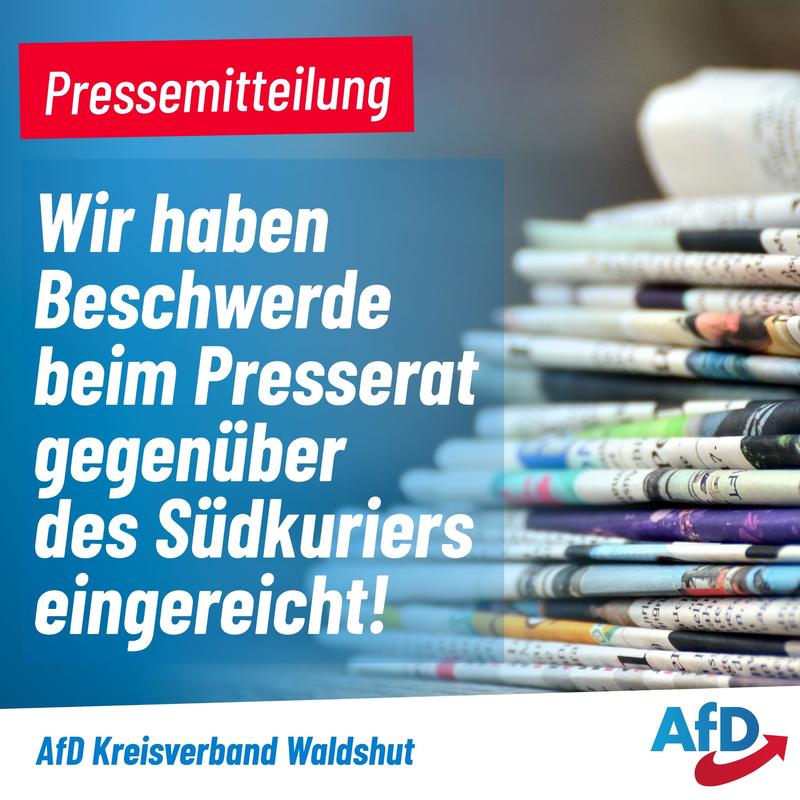 Der AfD Kreisverband Waldshut hat am gestrigen Tag, Beschwerde beim Presserat gegenüber dem SÜDKURIER eingereicht. Es handelt sich hierbei um das bewusste Verbre...
