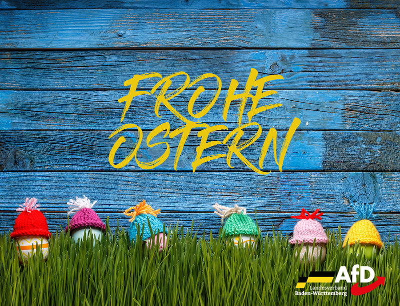 Der AfD Landesverband Baden-Württemberg wünscht allen Unterstützern und Mitgliedern ein erholsames und entspanntes Osterfest. Genießt die Zeit mit euren Familie...