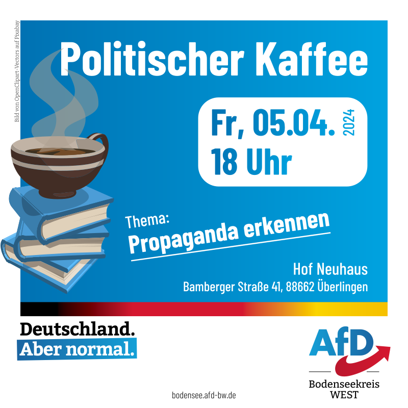 Wir laden alle Interessierten herzlich ein: Politischer Kaffee in Überlingen am Freitag, den 5. April 2024 um 18 Uhr im Hof Neuhaus, Bamberger Straße 41, 88662 Ã...