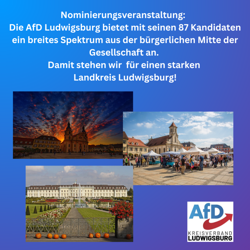 Am 18.2.24 lud der AfD-Kreisverband Ludwigsburg zur Nominierung der Kandidaten für die Regionalversammlung Stuttgart und den Kreistag Ludwigsburg ein. Nach der Beg...