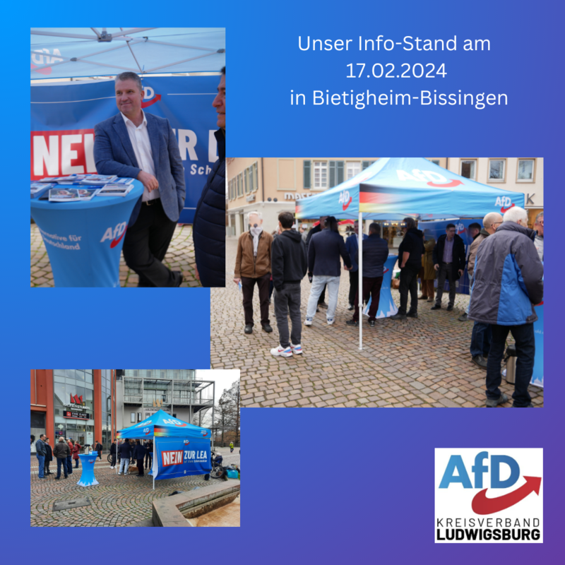 Am 17.02.2024 waren wir mit unserem Infostand in Bietigheim-Bissingen. Einige Bürger waren hoch erstaunt, unserem Bundestagsabgeordneten und Kreisverbandsvorsitze...