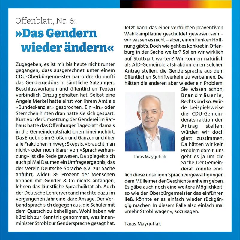 Das Gendern wieder ändern - Taras Maygutiaks Beitrag im Meinungsforum des Offenblatt