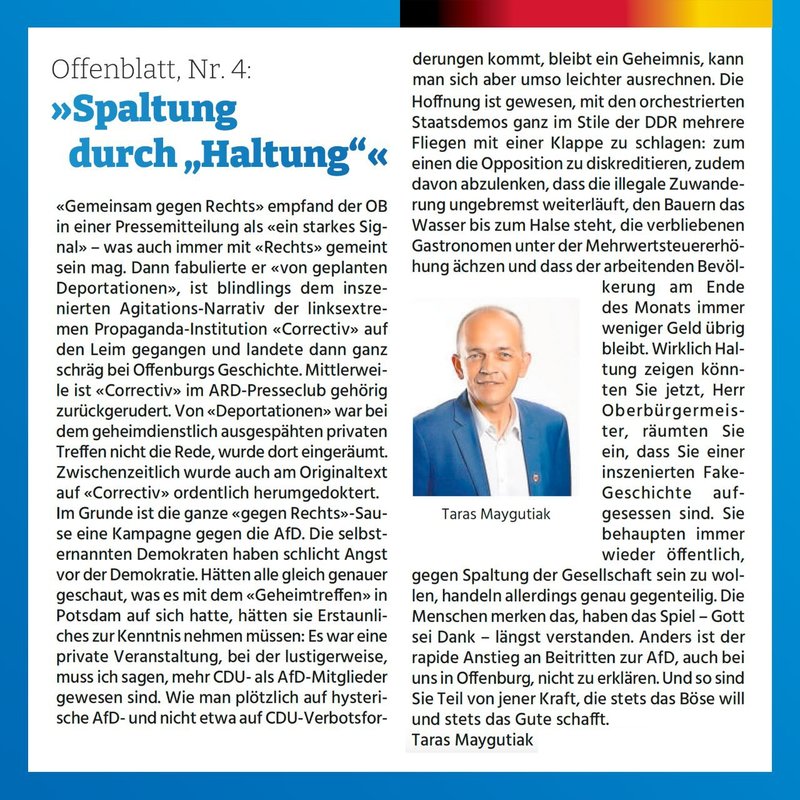 Spaltung durch "Haltung" Taras Maygutiaks Beitrag im Meinungsforum des Offenblatt
