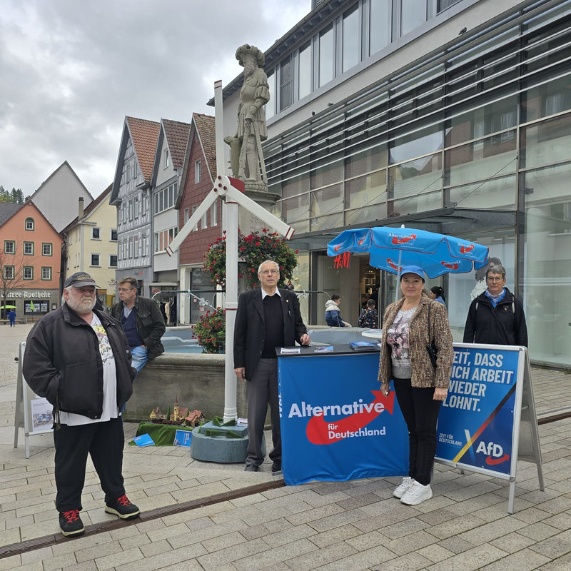 Am Samstag, dem 04. Oktober 2025, beim Infostand des Wahlkreises Balingen in Albstadt-Ebingen. Besondere Aufmerksamkeit erregte auch unser Windkraft-Modell mit Dorf und Kohlezug im Maßstab 1:87. Wir kamen wieder mit Bürgern ins Gespräch, darunter auch einige junge Leute. Trotz Reg...