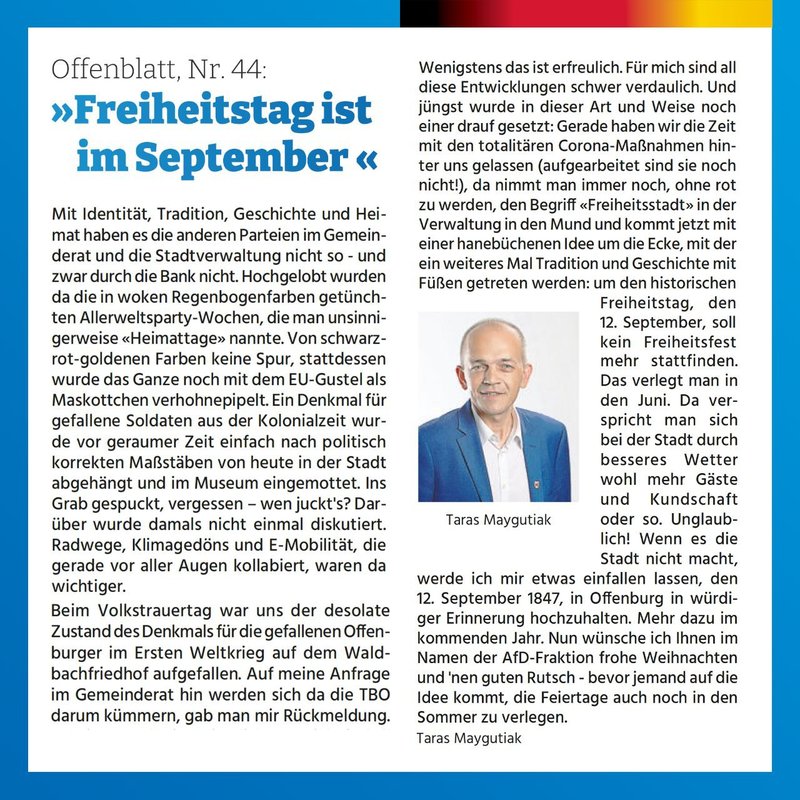 Freiheitstag ist im September! Taras Maygutiaks Beitrag im Meinungsforum des Offenblatt