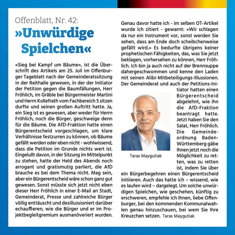 Unwürdige Spielchen - Taras Maygutiaks Beitrag im Meinungsforum des Offenblatt